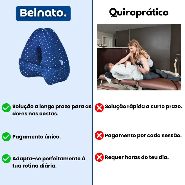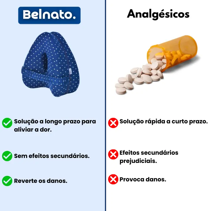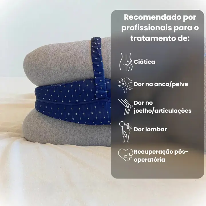 Colocar a Almofada Ortopédica Belnato™ entre as pernas atua diretamente na causa principal do teu desconforto, com características comprovadas cientificamente para apoiar a coluna e favorecer a recuperação, o alívio e o realinhamento das costas.